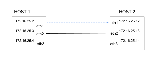 Host 1 and Host 2 are connected through a switch. They have multiple network interfaces in the same subnet to communicate with each other.